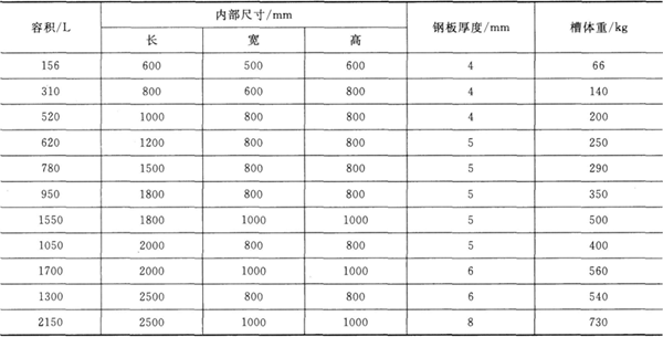 計算出槽體內(nèi)部尺寸后,再按表8-3規(guī)格化。如需要槽襯,則尺寸應(yīng)適當(dāng)加大