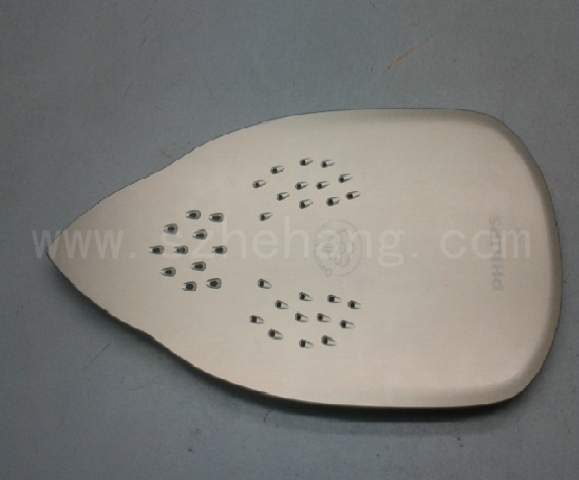 合航集團為飛利浦電氣燙斗底板硬質氧化電鍍效果:產品的硬質氧化后表面非常光滑,獨特的杏色與眾不同,外觀絢麗;產品氧化的厚度控制在20-26um之間,保證產品孔徑的尺寸在公差范圍內;硬質氧化后產品可耐高溫100度1小時以上,不會變色、不會有裂紋。